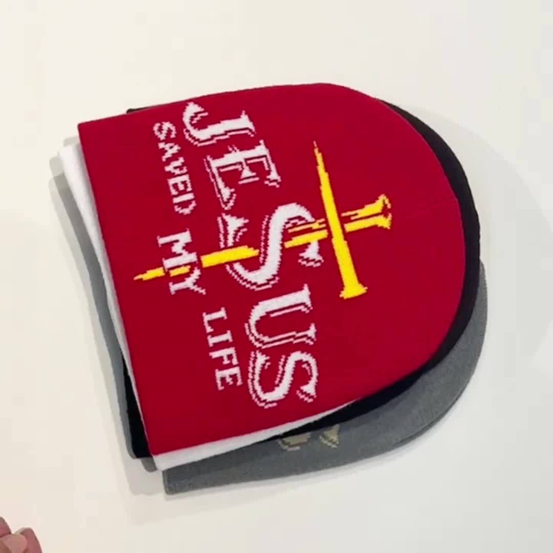3pcs, Jesus Saved My Life Rapper Unisex Jacquard Beanie Hat for Autumn and Winter Outdoor Versatile Cycling Warm Adult Hats in Three Colors: Red, Black, White