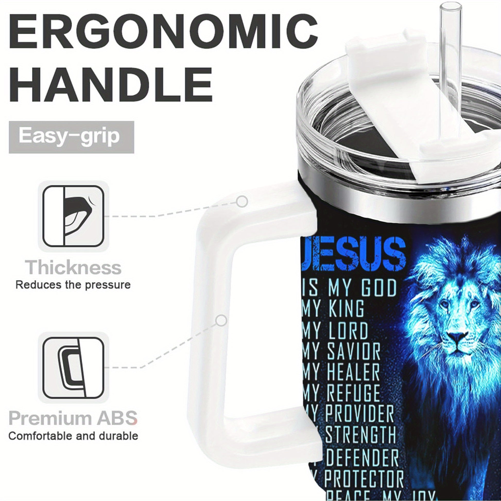Experience bold faith and practical style with the Jesus Lion Art Travel Mug.