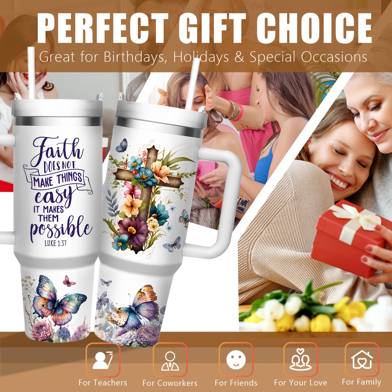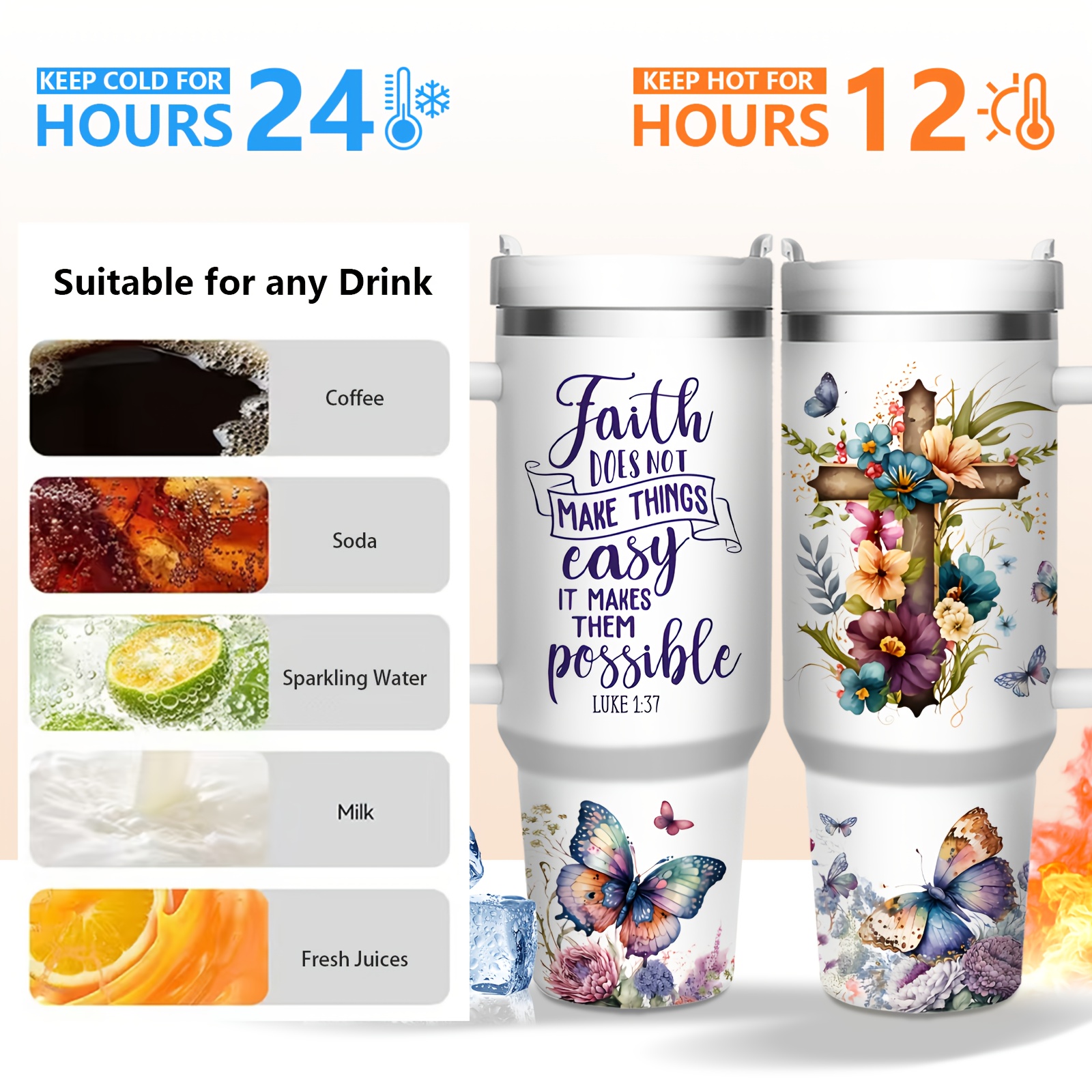 40oz Stainless Steel Insulated Coffee Cup with Lid & Straw - "Faith Doesn't Make Things Easy..."