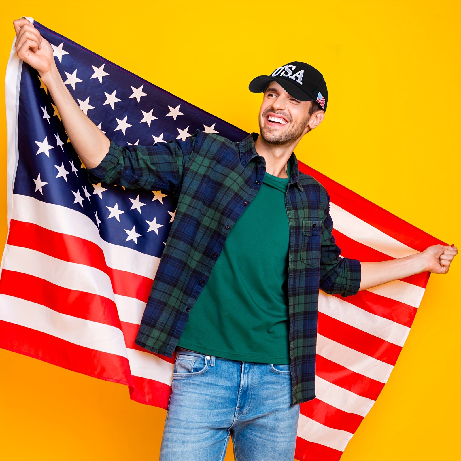 4pcs Patriotic USA Baseball Hats - Adjustable Cotton with Embroidered American Flag