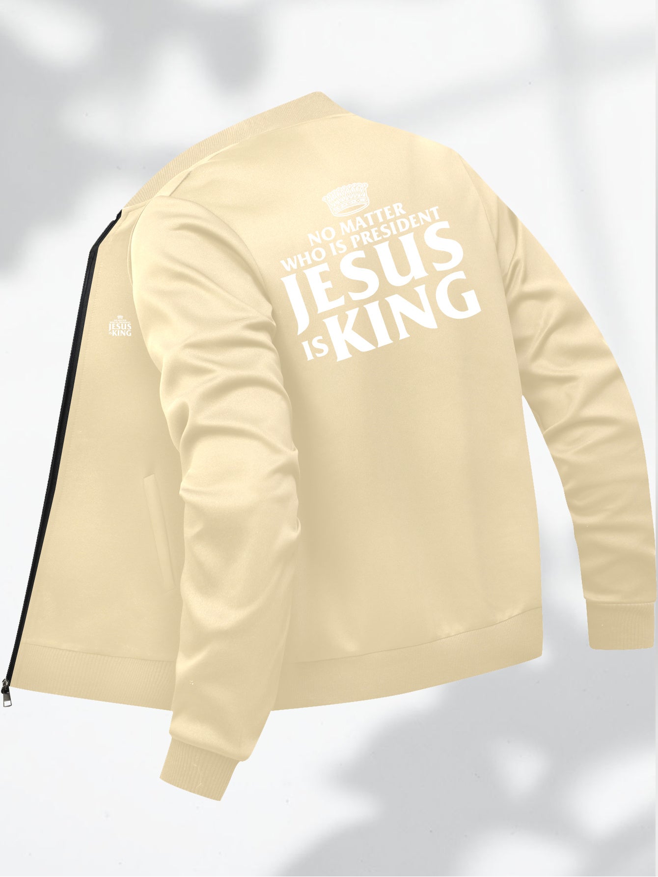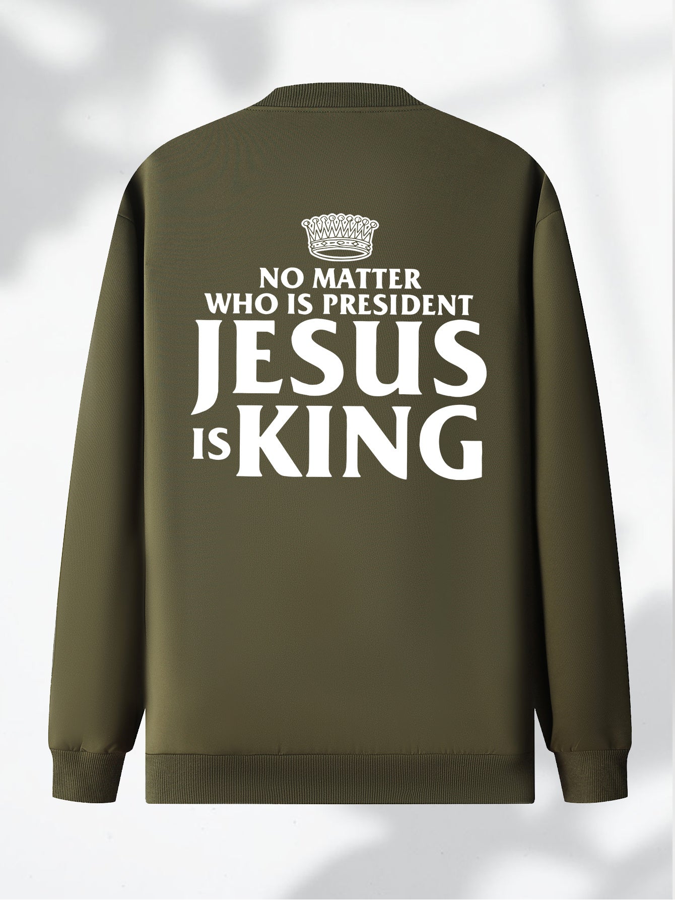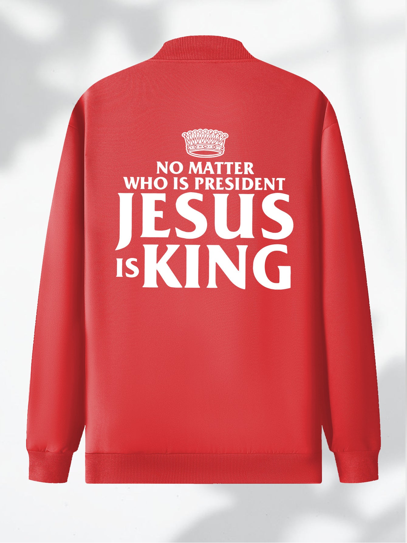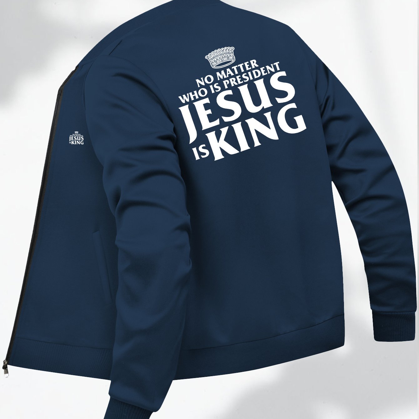 No Matter Who is President, Jesus is King — a bold navy zip-up that lets you wear your faith confidently while staying comfortable every day.