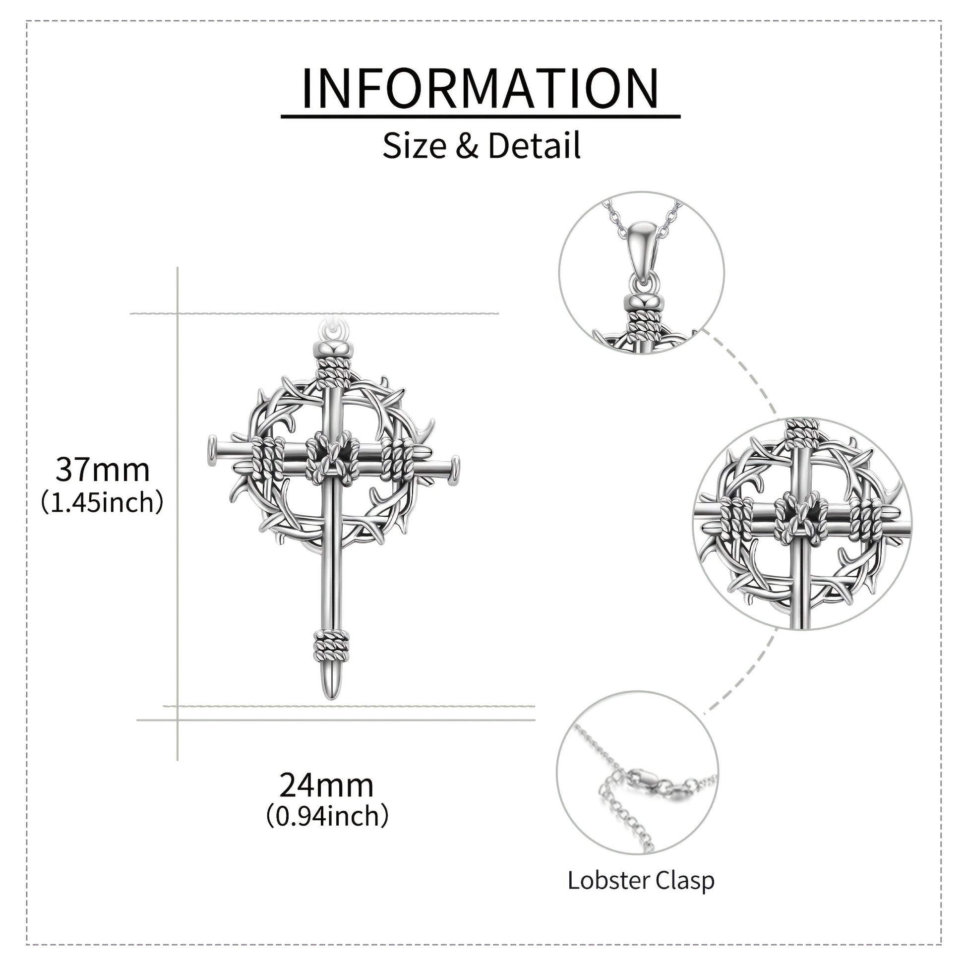 Discover the elegance and spirituality embodied in our Nail Cross Necklace Silvery Thorns Crucifix Pendant. This stunning piece of jewelry merges a classic design with a modern twist, making it a perfect accessory for everyday wear or special occasions.