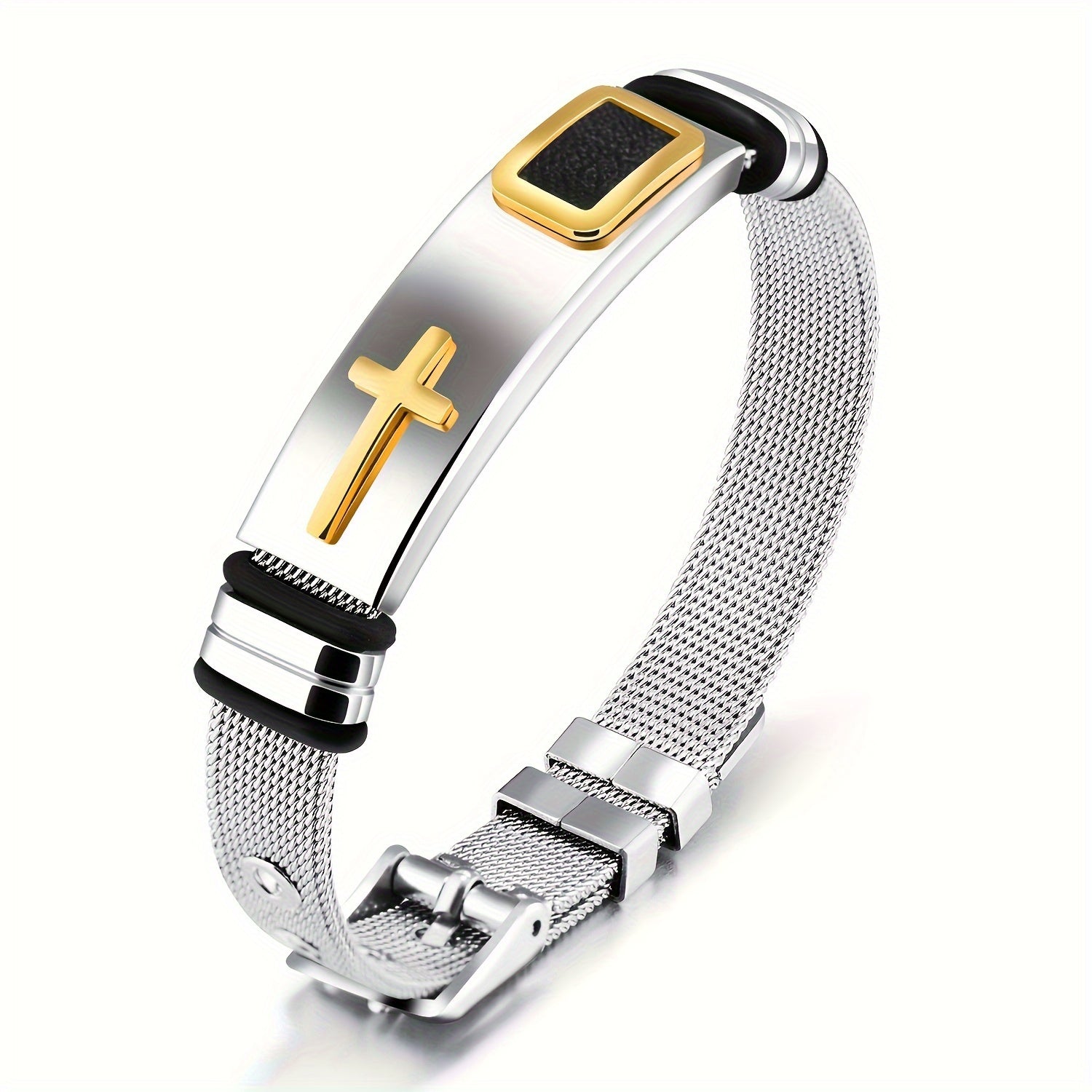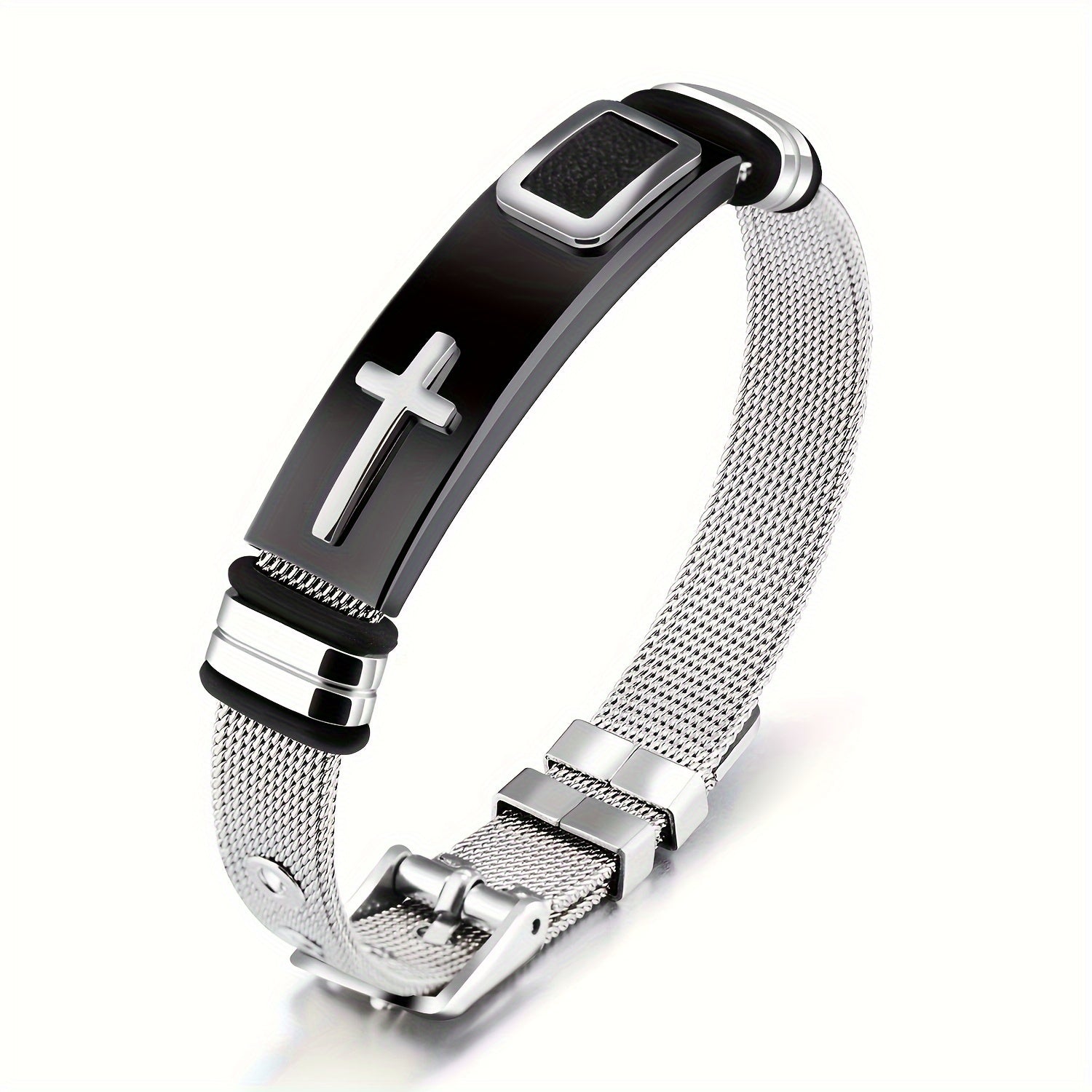 Cross Titanium Steel Mens Bracelet Glossy Stainless Jewelry