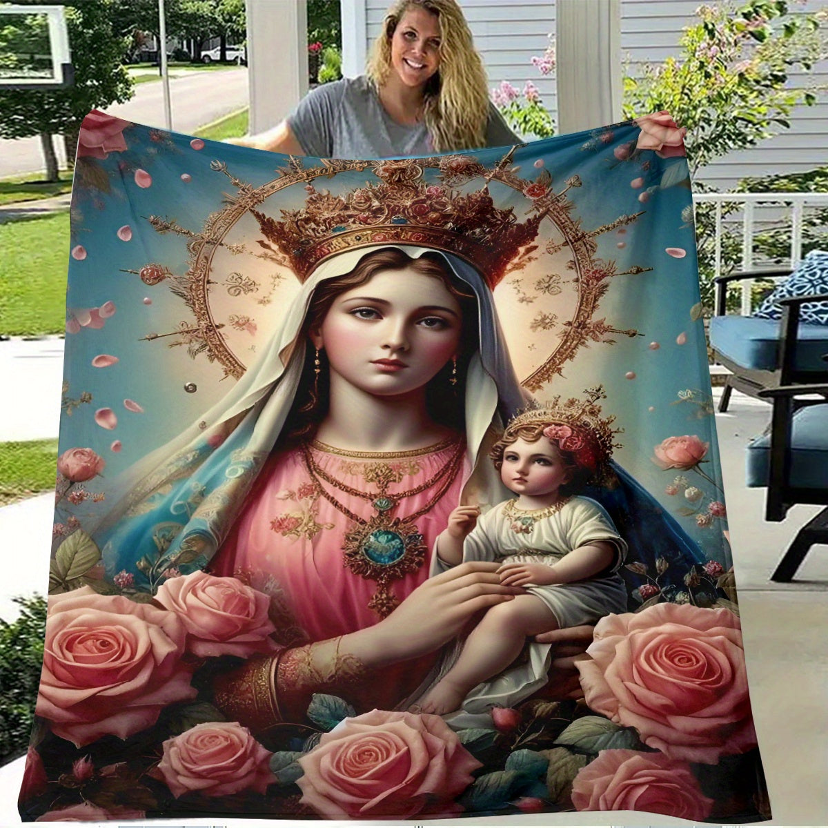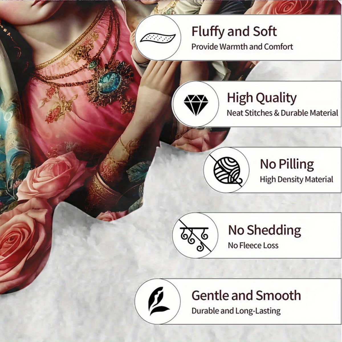 Super Soft Flannel Shawl Blanket With Unique Angel Pattern