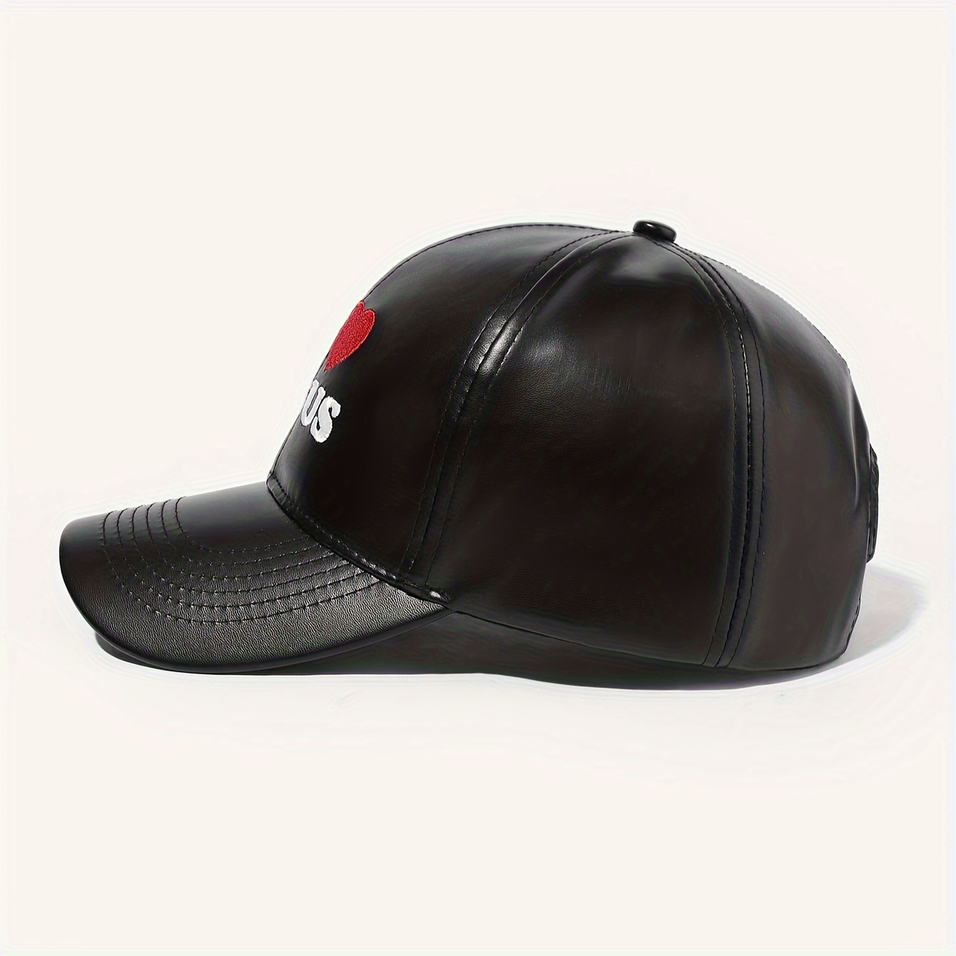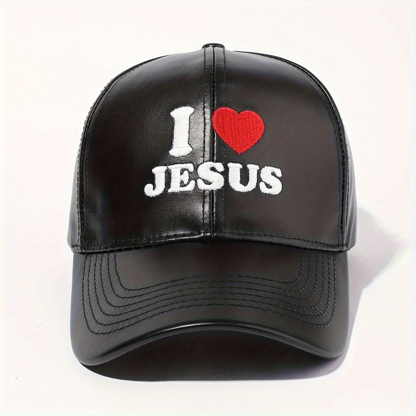 Faux Leather Baseball Cap with "I Love Jesus" Embroidery - Adjustable Snapback