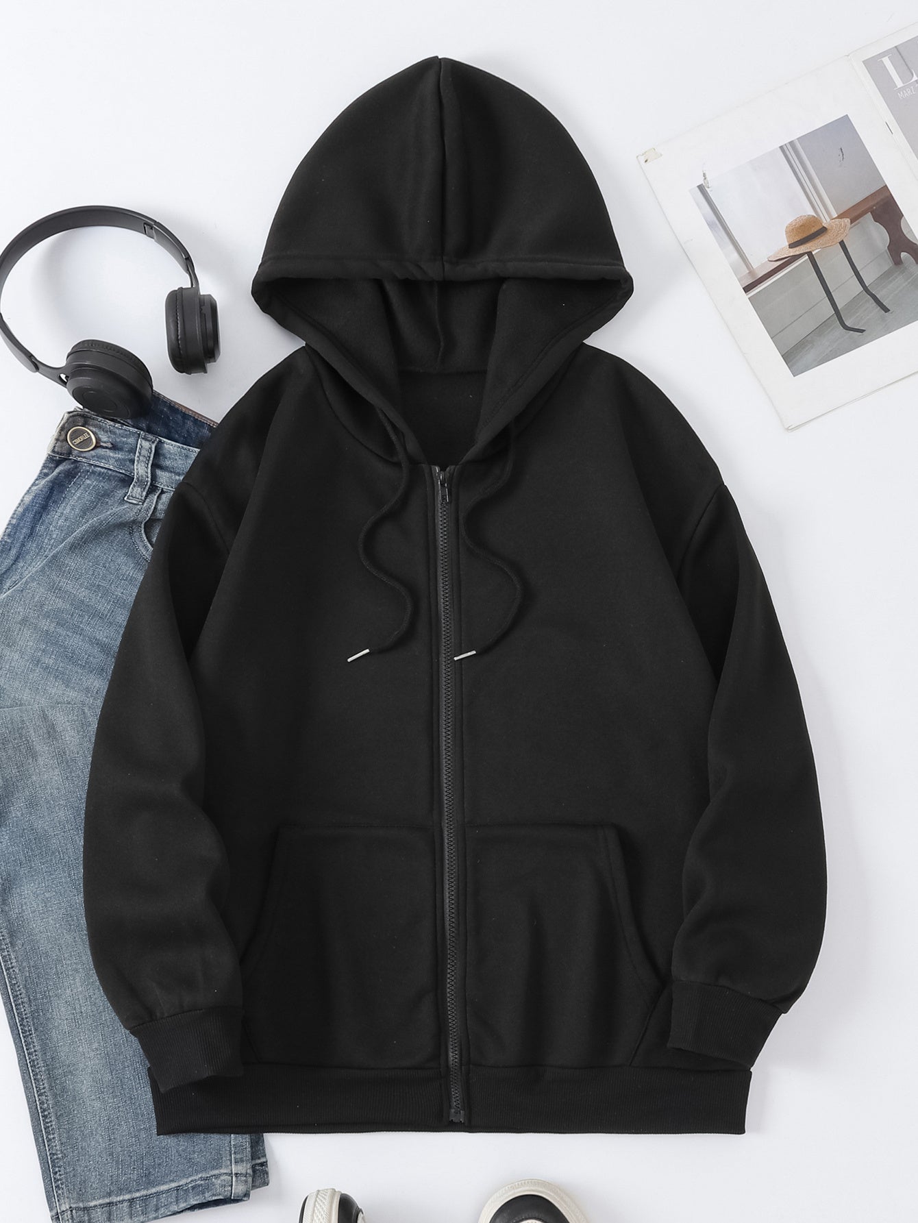 - Hooded collar with a practical front pocket provides warmth on cool mornings and a convenient place to stash keys, phone, or cards.